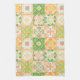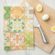 Ornate tiles in green and yellow kitchen towel