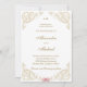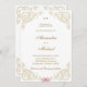 Elevate your celebration with this personalized Rococo Vintage Wedding Invitation, perfect for a baroque-themed wedding. This timeless design features a delicate soft mocha frame adorned with a charming pink peony detail, all set against a crisp white background for an elegant and refined look. The design is beautifully accented with a classic monogram of the couple's initials, using a blend of elegant modern and script fonts that add a touch of contemporary sophistication to its vintage charm. Ideal for adding a graceful, romantic flourish to your special regency era day.