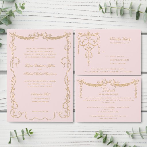 Ornate Vintage Pink Paris RSVP Card