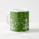 Drink your coffee, tea or hot chocolate in festive style from this jumbo (20 oz) mug featuring my photograph of a white Christmas tree ornament and added digital art snowflakes to the background. The design is on a transparent background so you can click customize to select a background colour other than green.