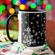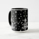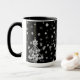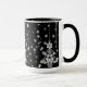 Ornate White Christmas Tree Snowflakes on Black Mug