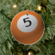 L'ORANGE DE L'ORNEMENT 5 DE BILLARD/DE NOËL BOULE DE PISCINE (CINQ) LES RASSEMBLENT TOUS (15) POUR UN ARBRE DÉCORÉ ORIENTÉ DE NOËL DE BOULE DE BILLARD DE JOUEURS DE PISCINE.