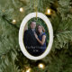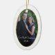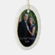 Photo personnalisée ornement d'arbre de Noël fait en forme ovale. Un arrière - plan en dentelle blanche pâle a une zone de photo encadrée en or ovale découpée, et le texte sur le bas dit, Notre premier Noël 2010. Personnalisez en ajoutant votre propre photo et en changeant le texte si vous voulez quelque chose de différent. Grand premier ornement pour les nouveaux mariés et fait un beau cadeau.