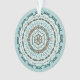 Ce modèle de mandala présente des couches de motifs blancs, turquoise et marron inspirés des tissages celtes et des médailles indiennes, comme des vignes, des rubans et des fleurs de lotus.