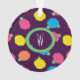Des roses stylisés en rose néon, bleu, jaune et corail avec des feuilles vert néon sont répartis sur un arrière - plan violet profond pour créer un motif floral amusant. Customisez le monogramme sur ce ornement avec votre initiale pour en faire votre propre.