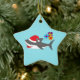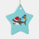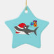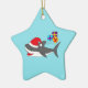 Si vous aimez des requins, vous aimerez cet ornement en céramique avec l'image d'un requin mignon et des cadeaux de Noël. Le requin utilise un casquette de Père Noël. Cette conception de requin est une de mes premières conceptions et l'un de mes favoris. La conception est personnalisable et vous pouvez ajouter votre texte, ou changez la couleur de l'arrière - plan.