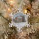 Ornement de flocon de neige d'étain comportant Carnegie Hall Lewisburg, WV couvert dans une couverture de nouvelle neige tombée.