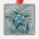 Ornement Carré Argenté Abstrait Bleu Vert Papillon Imaginaire Fractal Art