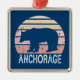 Ornement Carré Argenté Anchorage Alaska Retro Bear
