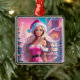 Ornement Carré Argenté Belle fille de Noël rose 01