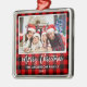 Ornement Carré Argenté Brosse Script Rouge Plaid Famille Joyeux Noël