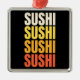 Sobre design de texte coloré avec "Sushi, Sushi, Sushi, Sushi" en beige, jaune, orange et rouge