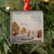 Ornement Carré Argenté Figures patinage dans un paysage d'hiver