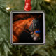Pour les amateurs de courses hippiques ! Ce joli ornement de Thoroughbred est dressé contre un arrière - plan noir pour faire ressortir les couleurs de cette image d'action rapide.