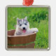 Ornement Carré Argenté La marionnette sibérienne Husky dans un pot