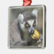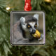 Ornement Carré Argenté Lémurien à queue cerclée mangeant une banane