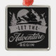 Style rétro "Laissez l'aventure commencer" design de texte avec montagnes, oiseaux, rivière, pins et illustration de coucher de soleil de style rétro pour tous ceux qui aiment la nature et le design de style rétro. Il est facile de changer l'arrière - plan et de le personnaliser.