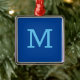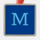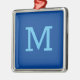 Ornement Carré Argenté Monogram Blue Modern Ajouter Votre Nom Initial