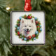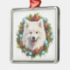 ORNEMENT CARRÉ ARGENTÉ NOËL ADORABLE SAMOYED CHIEN WREATING