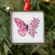 Ornement Carré Argenté Papillon à fleurs avec Sakura rose