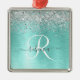 Teal Brushed Metal Silver Glitter MonogramConçu par Birdie S