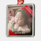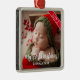 Ornement Carré Argenté Première photo personnalisée de Noël du bébé