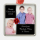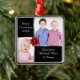 Silver and black Christmas photo ornament with red ribbon decoration and space for 2 photographs. Square metal ornament with red ribbon to hang on your tree. Click 'customise it' to reposition your photo if needed.