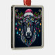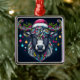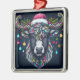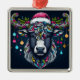 Cette illustration éclatante présente une tête de vache ornée de motifs complexes et de décorations festives. Ses cornes se transforment en branches tourbillonnantes de saints et de baies, surmontées d'un chapeau de Père Noël moelleux. Des ornements colorés pendent autour de son visage, qui a une expression calme, presque royale. L'oeuvre mêle réalisme et fantaisie, psychédélique, créant une image captivante, parfaite pour la saison des fêtes.