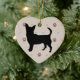 Pour les parents de chiens, nous aimons inclure nos enfants en fureur dans la fête de vacances ou l'événement familial. Ce ornement à la silhouette d'un Chihuahua est la façon parfaite de commémorer votre chien bien-aimé. Customisez le dos avec le nom de votre chien, les titres ou votre dicton préféré. Avec un motif d'empreintes de pattes bronzés et des points bleus sur un arrière - plan beige, cet ornement plaira à tout amoureux des chiens ou propriétaire d'animal de compagnie.