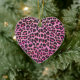 Ornement Cœur En Céramique Léopard noir et rose chaud