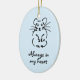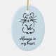 Ajoutez le nom de votre hamster à l'inversion de Keepsaké Créez un souvenir d'un ami de fureur très aimé. Cet ornement commémoratif de hamster montre un dessin à l'encre d'un hamster assis et a le slogan "Toujours dans mon coeur" (qui peut être changé en pluriel si nécessaire). Vous pouvez ajouter le nom de votre propre hammy au verso. L'ornement est d'un bleu doux.