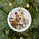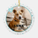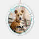 Gardez votre bébé en fourrure avec vous après qu'ils ont traversé le pont arc-en-ciel avec cet ornement Turquoise bleu et gris Empreinte de patte photo chien et animal de compagnie. Ajoutez une photo de votre chien bien-aimé dans un ornement pour toutes les saisons. Ce design unique encadre votre ami canin sur une photo avec son nom, empreintes de pattes pastel, un coeur et aide à les garder éternellement dans nos coeurs.