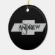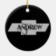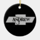 Ornement rond noir avec Andrew dans un emblème Chevy.