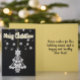 Ce design vertical présente une photo d'un ornement d'arbre de Noël blanc orné sur un arrière - plan noir. Une voûte en or Joyeux voeux de Noël en haut. Personnalisez le message d'accueil intérieur ou supprimez le texte d'un blanc à l'intérieur pour une note manuscrite.