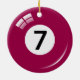 Ornementez comporter une boule de piscine marron du numéro sept avec la réflexion. Perfectionnez Noël ou le cadeau d'anniversaire pour des joueurs de piscine. Chacune des seize boules est disponible sur des dessous de verre, des autocollants, le magnet, des porte - clés et des ornements.