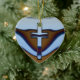 Montrez votre foi avec cet ornement fait sur commande de croix de coeur de chrome.
