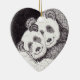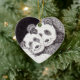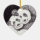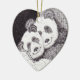 Deux ours panda mignons étreignant dans un arbre. Dans le premier plan est une tranche en forme de coeur de bois. L'original est un 5" x 7" dessin d'encre sur 140 livres de papier d'aquarelle. Le dos de cet ornement peut être personnalisé avec des noms de votre choix.
