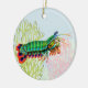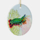 Peinture originale d'art d'une crevette colorée Peacock Mantis par l'artiste Carolyn McFann de Two Purring Cats Studio imprimée sur un ornement de vacances de qualité pour les amateurs de plongée sur les récifs coralliens, de sushi et d'aquarium d'eau salée.