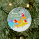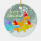 Ornement de dinosaures de Joyeux Noël. Trois dinosaures de sourire heureux : Diplodocus orange, Stegosaurus bleu et Triceratops jaune avec des casquettes de père Noël dans un paysage d'hiver de neige avec des flocons de neige tombant avec l'ornement personnalisable de "Joyeux Noël" des textes. Sur le dos également nos 3 amis et texte personnalisable " Joyeux Noël" de dinosaure. Ce bel ornement de Noël est entièrement personnalisable, ajoute votre texte personnel, le personnalise avec vos images et textes ! Un ornement doux adorable dans l'arbre de Noël, accrochant sur votre mur ou dans la fenêtre !