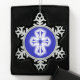 Ornement de flocon de neige d'étain/croix celtique bleue