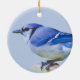 Ce petit geai bleu semble terrible sur cet ornement coloré de faune.
