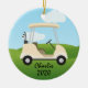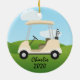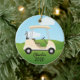 Golfing Golf Cart Ornement en céramique avec texte personnalisable.