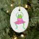 Cette grenouille avec du charme de ballerine apparaît des deux côtés de cet ornement ovale de vacances. Quand cet ornement accroche outre d'un arbre ou d'un manteau, cette grenouille regardera vraiment comme elle danse !