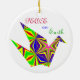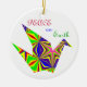 Le texte est personnalisable de part et d'autre, vous pouvez donc personnaliser l'ornement pour toute personne et occasion spéciale. La grue est conçue avec un motif kaléidoscopique de couleurs brillantes. Je peux mettre ce design sur d'autres produits.
