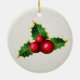 Éclairez vers le haut de votre arbre de Noël et donnez un contact de chaleur et l'excitation des vacances à votre décoration de Noël avec cet ornement en céramique de Noël de cercle simple pourtant avec du charme. Comportant une belle copie de gui de houx de Noël, l'ensemble sur un fond blanc cassé en ivoire de texture, cet ornement avec du charme est une manière parfaite de commémorer la saison des vacances avec votre famille et fait un grand cadeau pour tous votre aimé. Personnalisez-le avec vos propres mots.