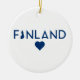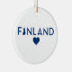 Cette décoration présente les couleurs nationales de la Finlande, avec une carte du pays et un coeur à l'intérieur ! Le dessin est imprimé d'un côté de l'ornement.