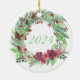 Adorez votre arbre avec la beauté intemporelle de cet ornement de Noël avec une délicate couronne d'aquarelle de fleurs de Noël roses et violettes, nichée au milieu de sprigs de pin à feuillage persistant, cônes de pin, et de baies rouges vibrantes. Cet ornement saisit la chaleur et l'élégance de la saison, mêlant des tons doux fleuris aux textures riches de la nature. Parfait pour ajouter une touche de sophistication à votre décor de vacances, il fait un cadeau merveilleux ou un ajout chéri à toute collection de décorations.