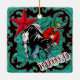 Ornement de lutte de boeuf de cowboy de rodéo avec l'ornement en céramique d'arrière - plan de cuir de faux