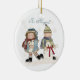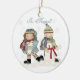 Notre ornement de gardiens de vacances magique hiver présente un garçon et une fille construisant des bonhommes de neige et le texte qui dit "C'est magique!".