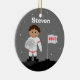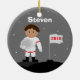 Cet ornement personnalisable de Noël d'astronaute peut être personnalisé avec le nom et l'année de votre enfant. Il fait un grand cadeau de stuffer ou de Noël de bas. Il comporte un garçon dans un uniforme d'astronaute. Conception de BabyStar de quelques éléments